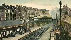 The 4 ft 8+1⁄2 in (1,435 mm) standard gauge London and South Western Railway (LSWR) arrived in Plymouth on 18 May 1876. Initially their trains arrived over the SD&TR line, along which a third rail had been laid to allow mixed gauge working, to call at Mutley before continuing on the new Cornwall Loop Line and a new branch to their own station at Devonport.[7] A new joint station was opened at Plymouth North Road on 28 March 1877.