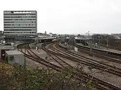 Plymouth railway station is an important station on the Exeter–Plymouth line. Great Western Railway (GWR) trains from London Paddington station either terminate here or continue to Penzance along the Cornish Main Line.[11] Other services on this route are operated by CrossCountry from as far as Manchester or Aberdeen.[12] Local services are operated by GWR, both on the main line and on the Tamar Valley Line to Gunnislake.[13]