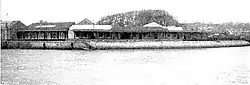 The first main line railway to arrive was the South Devon Railway (SDR), which brought its line from Exeter to a temporary terminus as Laira on 5 May 1848. The line was a 7 ft (2,134 mm) broad gauge line backed by the Great Western Railway (GWR) and was completed to Millbay on 4 April 1849, although it had originally been conceived that the terminus would be on the high ground at Eldad.[4] A siding into the Plymouth Great Western Docks was opened from Millbay station in 1850.
