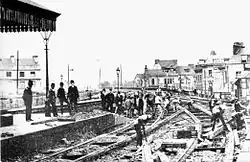 The South Devon and Tavistock Railway (SD&TR) was opened a few weeks later on 22 June 1859 and was extended by another company to Launceston on 1 July 1865.[7] In 1867 a short branch was laid from the CR at Keyham to connect with the rail system in the Naval Dockyard, where permanent rails had been in use since at least 1860.[2]