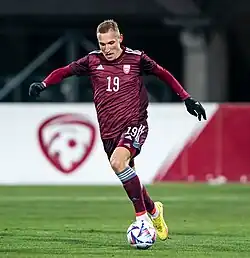 Raimonds Krollis (born 28 October 2001) is a Latvian professional footballer who plays as a forward for Czech First League club Slovan Liberec, and the Latvia national team.[2]