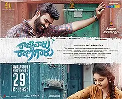 Raja Vaaru Rani Gaaru (transl. Raja sir, Rani madam) is a 2019 Indian Telugu-language romantic drama film directed by Ravi Kiran Kola and starring debutantes Kiran Abbavaram and Rahasya Gorak.[2]