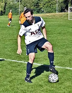 He played for Chertsey Town during the 2007–08 season and on 8 July 2008 signed for North West Counties League side Stone Dominoes.[34] He has also played celebrity football matches for charity on a few occasions[35][36] and played with members of Hollywood United while in the district for acting career purposes. He also plays for the Arsenal Ex-Pro and Celebrity XI.[37] On 6 June 2010, he participated in a Soccer Aid game for England on the left wing.
