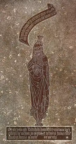 Hamsterley had a memorial brass of himself placed in the College Chapel.[2] He also gave brasses to Durham, Merton College, Queen's College, and the church at Oddington.