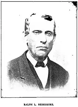 Berkshire's grandfather John Berkshire had been a Monongalia County pioneer. In 1817 his father, farmer William Berkshire, moved his young family across the Ohio River from what had become Maryland to Monongalia County (then in the state of Virginia). William Berkshire would marry three times; only Ralph and his brother Edmond C. Berkshire, who moved westward on the National Road to Addison, Champaign County, Ohio, would survive of the ten children born to his second wife, the former Ruth Bradget. His father was a Whig and Patriot and a devout Methodist, and against his will was once written in by friends in opposition to Sherrard Clemens.[3]: 43 When he was 18, the home-schooled Ralph Berkshire left his family's farm, moved to Morgantown and apprenticed himself to a carpenter.[3]: 42 In 1838, he began to read law with Guy R.C. Allen in Morgantown.[3]: 43–44