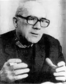 Ormazábal was released in 1970 after eight years and made secretary general of the party in France, holding this office until the 1977 Congress of the Communist Party of the Basque Country in 1977. He was replaced by Roberto Lertxundi as secretary general of the EPK at the party's third congress, which was held in the spring of 1977 in Bilbao.[2] The congress took place after the PCE performed dismally in the elections in Basque Country. Lertxundi, a physician and former member of the armed Euzkadi Ta Azkatasuna (ETA) group, was thought to be more in touch with the electorate.[4] Ormazábal was elected president at this congress, and was reelected president in the congress of 1981.[1] He died from a heart attack in Bilbao on 5 July 1982 at the age of 72.[2]