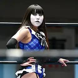 Ram Kaicho (ラム会長, Ramu Kaichō; lit. "President Ram", often transcribed as Ram Kaichow) is a Japanese professional wrestler currently working as a freelancer and is best known for her tenure with the Japanese promotions Ice Ribbon and Wrestling of Darkness 666.[2]