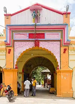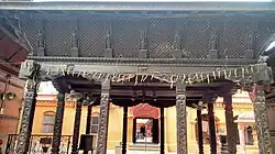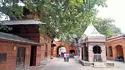 The Ram Mandir is one of the oldest Hindu temples in the city of Janakpur. In the 17th century, it was built by Chaturbhuj Giri.[2] It was later rebuilt in 1782 by the Gorkhali General, Amar Singh Thapa. The architecture of the temple is in the traditional Nepalese pagoda style.[3] The temple is located directly in front of the sacred Dhanushsagar Lake.[4] Within the Ram Mandir complex, there is also a Shaktipeetha known as Rajdevi Mandir.[5]