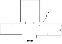 Ramessesnakht was buried in TT293. Surrounding the date of his death and burial there is some controversy. The highest attested date for Ramessesnakht so far stems from year 2 of Ramesses IX.[14] In a text stemming from the reign of Ramesses XI,[15][16] the High Priest of Amun, Amenhotep, refers to the burial of his father “in year ..... [year lost] of Pharaoh”.[17] This is problematical, since during this period, in official texts the term “Pharaoh” was normally used only to refer to the living king.[18] Still, the fact that his son, Amenhotep, is first attested in office in year 9 of Ramesses IX[19] clearly shows that Ramessesnakht must have died under this king and not under Ramesses XI.