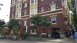 The company McMenamins operated the restaurant and bar Rams Head Pub in the Campbell Hotel (also known as the Campbell Building) at the intersection of Northwest 23rd Avenue and Hoyt Street, in the Nob Hill area northwest Portland's Northwest District.[1][2] The restaurant had a red brick facade,[3] sidewalk seating, a lounge, coffered ceilings, stamped-tin wainscoting, and ornate woodwork.[4] Portland Monthly said the interior was "a time machine, with ample seating and a thrift store-esque stench that's light enough to tolerate".[5] The drink menu included liquor jellies, whiskey flights, and mixed drinks such as an apple pie cocktail and a pomegranate-infused sparkler.[4][6]