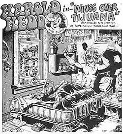 He drew numerous covers for the Straight and created the Harold Hedd comic strip, which ran in the paper as well as in other publications such as The Body Politic,[4] during the early 1970s. Described by writer Dana Larsen as Holmes's "most well known cartoon creation",[5] the one-page strip was collected in two volumes: