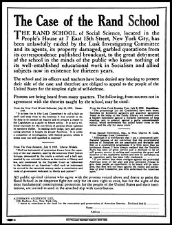 - ^ a b c d e f g h "Seeking to Silence Truth," in The Case of the Rand School. New York: Rand School of Social Science, July 1919; pg. 2.
