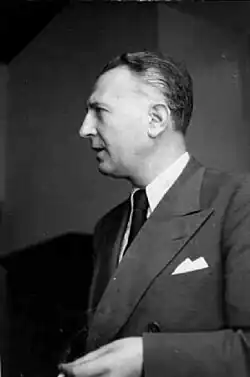 Forced to flee by the German invasion of France, he and his wife finally reached New York aboard the liner Serpa Pinto on 26 December 1941, after traveling through Algiers, Casablanca and Mexico with false documents. In the United States Pacciardi supported the unsuccessful efforts of the Italian-American Mazzini Society, of which he had been a member since its founding in 1939, to organize volunteer groups to take part in World War II on the Allied side.[2] He also tried to contact Charles de Gaulle, via Pierre Mendès-France, to ask him to attach the prospective units to the Free French Forces.[10] Plans for an Italian Legion however were seriously hampered by recruitment difficulties: the Mazzini Society couldn't count on the same base as De Gaulle, who enjoyed the loyalty of a part of the French military and controlled territory in some French colonies; nor it could hope to recruit most Italian Americans, who would be drafted in the US Armed Forces. Despite his growing dislike of Communism, during this time Pacciardi pursued a line of cooperation and unity between all anti-fascist forces, which was a cause of friction with the rest of the Society and ultimately prompted him to resign his membership.[11][12]