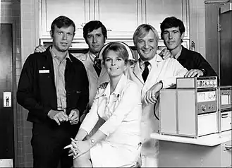 Mantooth's and Tighe's likenesses were used for games, puzzles, lunch boxes, action figures, and comic books connected to the series.[1] The comic books for Emergency focused on the primary actors from Rampart Hospital, along with Johnny and Roy. The four comic books,[21] and four magazines,[22] were issued by Charlton Comics in 1976.[1] Some of the issues were drawn by John Byrne and Neal Adams. Emergency! +4 and Emergency! both had coloring books that were created to promote the series to young viewers using the likenesses of the five principal characters. Viewmaster released a series of reels that had film stills of the show arranged in a story or photo montage.[1]