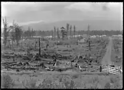 The Raetihi forest fire of March 18–20, 1918 almost destroyed Rangataua. Many houses and sawmills were burnt down.[8] Fires had previously threatened the town in January 1914.[9]