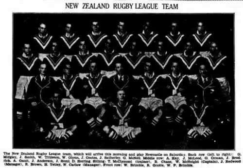 74. ^ "League Team/N.Z. Team Changed". Auckland Star, Volume LXVIII, Issue 191. 13 August 1937. p. 8. Retrieved 8 August 2022.