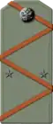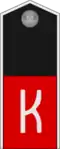 - Kornilov regiment: background of shoulder boards: black bottom, red top, white piping, white stripes for officers and white zigzag for generals;[3] in case of embroidered shoulder boards for parade uniform: white embroidery, piping and officer stripes split in two (black top, red bottom), while the zigzag of generals was of the same color as the embroidery.[4]