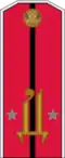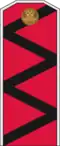 - Drozdovsky regiment: dark red (magenta) background of shoulder boards, white piping, black stripes for officers and black zigzag for generals;[2]