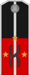 - The so-called officer regiments (Alexeev, Drozdovsky, Kornilov and Markov regiments) had their own colors and uniforms. Initially, only former officers were accepted to these regiments, for which reason their ranks began with the 2nd lieutenant (podporuchik) upwards. In addition, the officer regiments introduced sleeve insignia (from 1 to 8 horizontal bars). Later, these regiments introduced ranks for soldiers and non-commissioned officers as well. Their corps colors were: