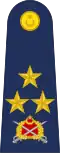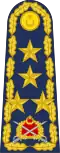 | Mareşal | Orgeneral | Korgeneral | Tümgeneral | Tuğgeneral | Albay | Yarbay | Binbaşı | Yüzbaşı | Üsteğmen | Teğmen | Asteğmen | |||||||||||||||||||||||||