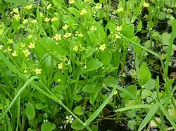 Ranunculus ophioglossifolius, known as adder's-tongue spearwort, is a herbaceous plant in the family Ranunculaceae ("buttercup family"), with small, bright yellow, buttercup-like flowers.