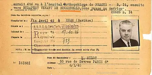 On April 20, 1943, Minot was deported from France to Mauthausen concentration camp in Germany.[5] On October 17, 1943, he was transferred to Buchenwald, where he was used as forced labor.[1]