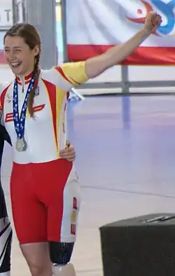 Acinas is a C2 classified cyclist, and cycles while having only one leg.[2] Prior to her accident, Acinas occasionally went to the gym and trained with her brother, and also rode mountain bikes from time to time.[3][4] A year and a half after her accident, she got on her bicycle and soon after, she went to Velòdrom d'Horta where she met a number of people who encouraged her in the sport, including her eventual coach, Bernat Moreno.[3][4]