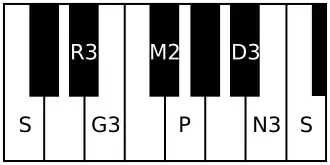 | Avarohanam | Ṡ N₃ D₃ P M₂ G₃ R₃ S |