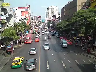 Ratchawithi Road, also spelled Rajvithi (Thai: ถนนราชวิถี, RTGS: Thanon Ratchawithi) is a major road in Bangkok, Thailand. It begins in Ratchathewi district at Sam Liam Din Daeng Junction, where it intersects with Din Daeng Road and Ratchaprarop Road, and runs northwest, past Victory Monument Circle, through Dusit district, and ultimately crossing the Chao Phraya River on Krung Thon Bridge and ending in Bang Phlat district at Bang Phlat Intersection, where it intersects with Sirindhorn Road and Charan Sanitwong Road.