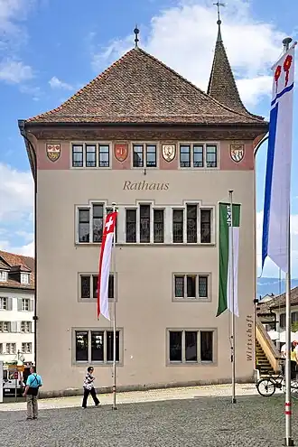 ![]() Rathaus Rapperswil at Hauptplatz plaza as seen from the east towards Neue Jonastrasse | |