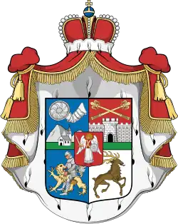 The Ratishvili had no officially confirmed coat of arms, but two versions of it are known, one found in Tsikhinsky's unpublished catalogue The Caucasian Armorial (1922), and the other given by Mikhail Vadbolsky in his book on the Georgian heraldry (1980).[2][4][5]