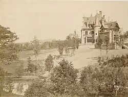 In c. 1873, after 500-years of ownership by the Rau von Holzhausen family, the industrialist and diplomat Ferdinand Eduard Stumm (1843–1925), later ennobled as Baron von Stumm, bought the property which included 1,900 fields of meadows and forest areas.[1] The last Lord Rau von Holzhausen as an officer in the Hessian Army and when Hesse-Kassel became part of Prussia during German unification, he refused to join the Prussian Army and sold all his property to Stumm, the ambassador's delegate, and moved out of Germany shortly thereafter.[2][3]