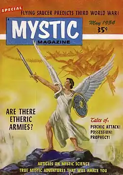 Palmer's editorial stance on the Shaver Mystery was that it was at least partly true.[133] He first made this claim in an editorial in Amazing Stories in September 1945, even going so far as to declare that he had evidence supporting the "mystery".[134] He editorialized in June 1946, "For those of our readers (they are in the minority!) who are 'certain' the Shaver Mystery is a hoax, let it be definitely placed on the record that your editor 'believes' it is a legitimate mystery, and that he 'knows' it is neither a hoax on his part nor on Mr. Shaver's!"[135] In March 1947, he repeated his claim: "Every word uttered editorially in Amazing Stories is my 'firm conviction', not any attempt at a hoax",[136] and in April attacked those who claimed he was hallucinating.[137] However, in the May 1955 issue of Other Worlds Science Stories, Palmer claimed that the "Shaver Mystery" was his own creation.[138]
