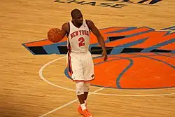 On July 9, 2010, Felton agreed to a contract with the New York Knicks.[5] Two days later, the deal was finalized for two years and $15.8 million.[6] Felton was selected as co-captain for the 2011 season alongside fellow free agent signee Amar'e Stoudemire. Early in the year, Felton had trouble working the pick-and-roll with Stoudemire. But after a few games, Felton gained confidence and in no time was a fan-favorite in New York City. Felton hit a number of clutch shots, including a step-back fade-away three-pointer that pinballed into the net against the Toronto Raptors.[7] The change of scenery seemed to be helping Felton; his play also saw the Knicks in playoff contention for the first time since 2004. Felton's time in New York, however, would not last long.