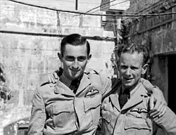 The Spitfires and their pilots were all assigned to No. 249 Squadron, commanded by Squadron Leader Stan Turner and operating from RAF Ta Kali.[13][15] Hesselyn's first operational flight with the squadron was on 11 March, when he and three other Spitfire pilots and 16 Hurricanes intercepted a small bombing raid. He had a faulty gunsight and radio which meant he took little part in the ensuing dogfight. The following days were busy as the air defences were repeatedly scrambled to deal with bombing raids mounted by the Luftwaffe.[16] However, as there were more pilots than Spitfires, Hesselyn had to share his aircraft and only flew a total of six sorties in March.[17] On 1 April Hesselyn, while on patrol north of Grand Harbour, shot down a Messerschmitt Bf 109 fighter that was escorting a flying boat. He became caught up in celebrating his victory and was nearly shot down himself. Later in the day, he was part of a group of Spitfires scrambled to intercept an incoming bombing raid and shot down a Junkers Ju 87 dive bomber.[18][19]