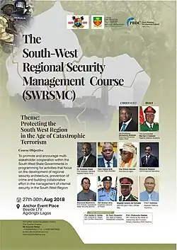 Lecture in 2018.[4] At the lecture, challenged Nigeria security agencies to strictly enforce the implementation of intelligence analysis in relation to the activities of bandits and violent extremists in order to realise a safer and more secure South West region.