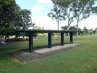 The Brisbane City Council built the concrete shelter at Raymond Park (east) as an air raid shelter in 1942.[1]