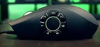 The Naga 2014 was released in July 2013 and featured "more pronounced, redesigned individual buttons, allowing for easier recognition and more precise button presses."[14] It had a total of nineteen programmable buttons, twelve of which are side-on. It was the first iteration in the Naga series to have a maximum sensitivity of 8,200 DPI, and is the only Naga which has both left-handed and right-handed versions,[15] though the left-handed edition was eventually discontinued for insufficient demand.[16] The only other iteration which has a maximum sensitivity of 8,200 DPI is the Naga Epic Chroma, released in November 2014. The Naga Epic Chroma is wireless and also featured nineteen programmable buttons of which twelve are on the side.[17]
