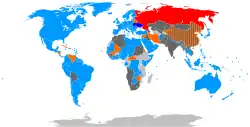 Countries on Russia's "Unfriendly Countries List". Countries and territories on the list have imposed sanctions against Russia.[159]