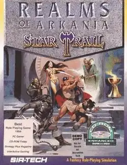 Realms of Arkania: Star Trail is a computer role-playing game by Attic Entertainment Software based on the German RPG system Das Schwarze Auge. The original German version of the game (German title: Das Schwarze Auge: Sternenschweif) was released in 1994. Due to the success of its predecessor Realms of Arkania: Blade of Destiny, it was translated to English and released by Sir-Tech in the same year. An expansion, Speech Pack, was released in 1994 for the floppy disk version.