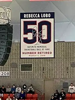 - ^ Anthony, Mike (March 2, 2019). "Mike Anthony: Rebecca Lobo back at center of UConn women's basketball world she helped create as her No. 50 retired". Hartford Courant.
