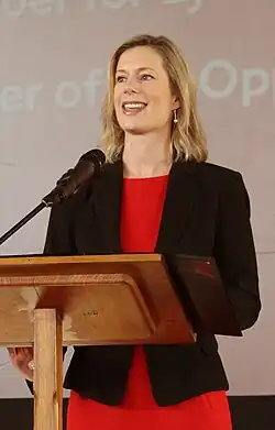 In February 2018, she declared the ALP would not be supporting the Liberals in attempting to re-introduce the state's anti-protest laws.[15] White promised in the campaign to fund abortion clinics, after the Liberal government cut all funds to them.[16] At the election in March, White led Labor to a three-seat gain, while paring the Liberals back to a bare majority of one seat.