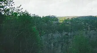 The gorge lies within the Daniel Boone National Forest and was subsequently designated the Red River Gorge Geological Area, an area of around 29,000 acres (12,000 ha; 120 km2; 45 sq mi).[1] It was designated a National Natural Landmark and National Archaeological District, and listed on the National Register of Historic Places.[3] The 13,379-acre (5,414 ha; 54.14 km2; 20.905 sq mi)[4] Clifty Wilderness Area lies entirely within the geological area in the Red River Gorge.