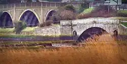 The 1793 bridge (in the foreground) with the newer road bridge behind
