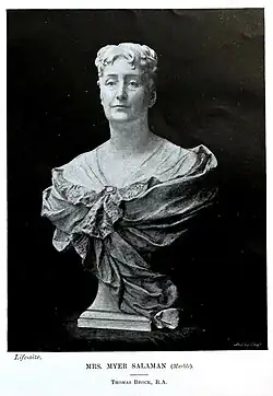 On 23 October 1901, Salaman married Hebrew scholar Nina Ruth Davis, whom he had met four months earlier at the New West End Synagogue. They were engaged ten days after meeting. After living in Berlin for several months, while Redcliffe completed advanced training in pathology, they returned to London, where he assumed the directorship of the Pathological Institute at the London Hospital.[27] They had six children including the pathologist Myer Head Salaman, the doctor Arthur Gabriel Salaman, the engineer Raphael Salaman, the artist Ruth Collet[28] and the singer Esther Sarah Salaman.[29] They settled in the country, in the village of Barley in Hertfordshire, where they lived with their six children (one of whom died in childhood). Nina Salaman continued to pursue her interest in medieval Hebrew poetry. Despite Barley's distance from London, she maintained a kosher home and Sabbath observance. For the festivals, the family traveled to London, where they stayed with one of Redcliffe's siblings and attended the New West End Synagogue. She took personal responsibility for the Hebrew education of her children until they left for boarding school.[27]