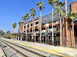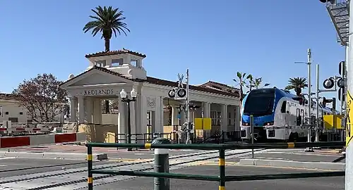 Redlands–Downtown station (also known as Downtown Redlands station) is a train station serving downtown Redlands, California, United States.[4][5] The station was built in 1910 for the Atchison, Topeka and Santa Fe Railway and operated until 1938. The facility was preserved and reopened on October 24, 2022 as part of the Arrow commuter rail service.[3]