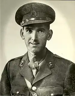 Yearning for adventure and a change from the parochial monotony that characterised Free State Ireland, Cunningham joined the British Army in 1943 in Belfast. An experienced architectural draughtsman, Cunningham entered the army as a second lieutenant in the 79th Armoured Division of the Royal Engineers. He was immediately sent to Scotland where preparations for D-Day were nearing completion.[3] Under the genial command of Major General P.C Hobart, the 79th Armoured had rethought hitherto customary tank design in preparation for the beachhead onslaught against the German Atlantic Wall in Normandy.[4] With innovative tank designs specifically attuned to short range beach fighting, and new training methods, Hobart's division were soon famed in army circles. His esoteric tanks quickly earned the nickname Hobart's Funnies. Although something of a laughing stock at the time, and refused by the American command,[5] some of the tanks proved quite useful and the beaches where they were deployed suffered fewer casualties than others.