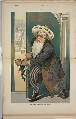 One supporter was Senator Boies Penrose of Pennsylvania. Addressing the subject of polygamy, Penrose reportedly glared at one or more of his Senate colleagues who had a reputation for philandering and said, "As for me, I would rather have seated beside me in this chamber a polygamist who doesn't polyg than a monogamist who doesn't monag."[8]