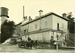 The hop boom of the 1860s brought the first Reedsburg Brewery to town. Frank and Florin Meckler built a brewery on North Walnut Street. The business would burn down several times and be sold to several owners. In 1880 the business was sold yet again and become the Reedsburg Brewing Company.[5] The brewery was only producing 350 barrels of beer per year as compared to the 1,000 barrels in previous years. A large fire burned down this building in 1904.[6]