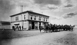 Regina attained national prominence in 1885 during the North-West Rebellion when troops were mostly able to be transported by train on the CPR from eastern Canada as far as Qu'Appelle Station,[28] before marching to the battlefield in the further Northwest – Qu'Appelle having been the major debarkation and distribution centre until 1890 when the completion of the Qu’Appelle, Long Lake, and Saskatchewan Railway linked Regina with Saskatoon and Prince Albert.[29] Subsequently, the rebellion's leader, Louis Riel, was tried and hanged in Regina – giving the infant community increased and, at the time, not unwelcome national attention in connection with a figure who was generally at the time considered an unalloyed villain in anglophone Canada.[30] The episode, including Riel's imprisonment, trial and execution, brought the new Regina Leader (later the Leader-Post) to national prominence.